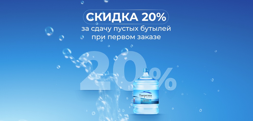 Проявите заботу о природе и получите выгоду! При первом заказе воды «Тверезна» сдайте пустые бутыли и получите скидку 20%. Мы за экологию и вашу экономию.